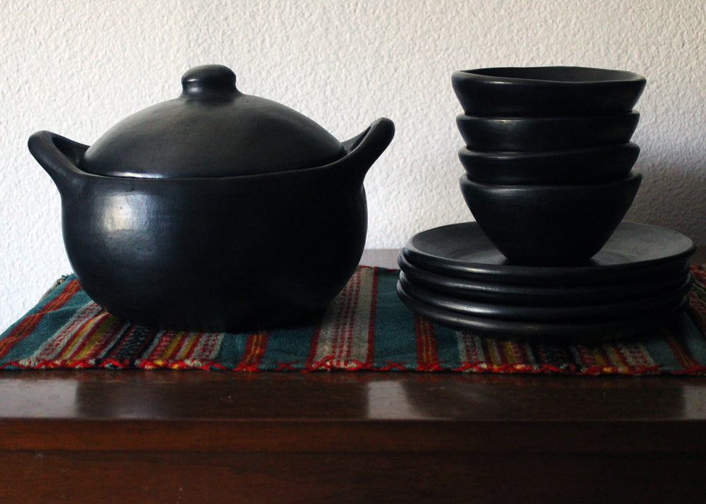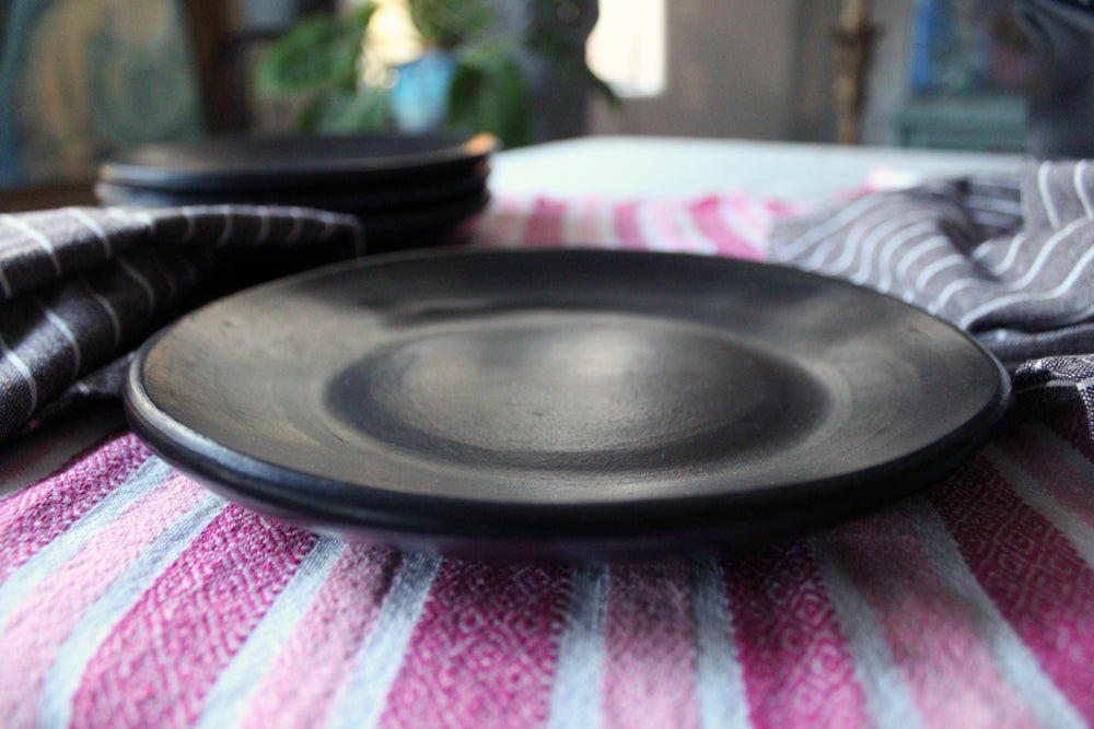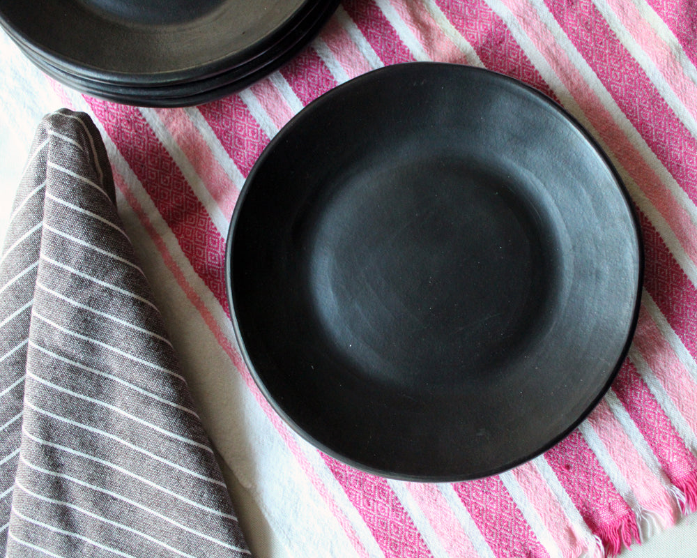 Our black clay round plate is an elegant piece of dinnerware that will impress with its all-natural beauty and simplicity. In 4 sizes, round Chamba plates make for an attractive table display during holidays, special occasions, and even nightly family dinners. With the ability to go from stovetop right to the dinner table, this round plate is non-toxic servingware, making it a safer choice for the conscientious cook.